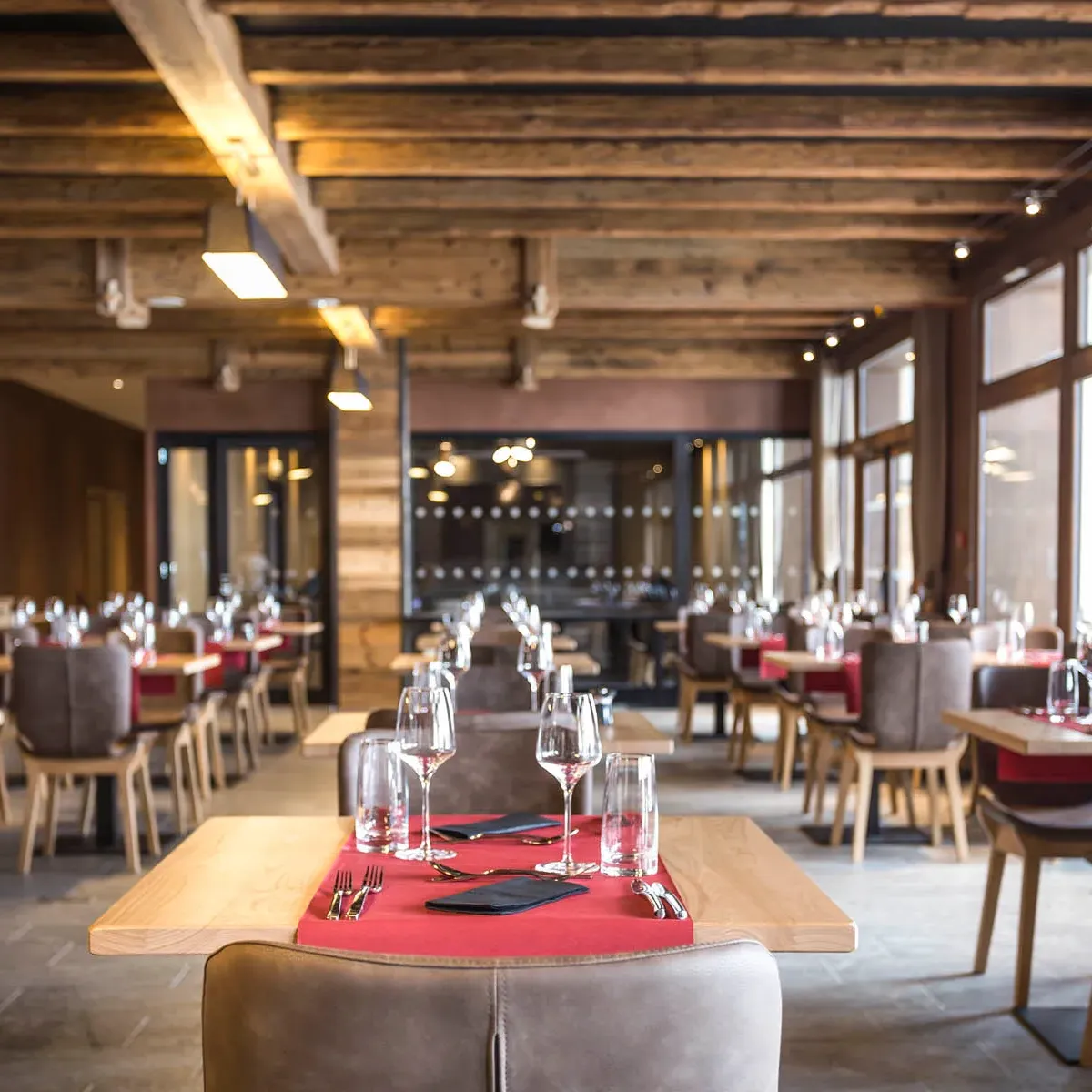 The Restaurant of the Hotel Saint Charles is located on the first floor of the hotel at the foot of the ski slopes in winter and pastures in summer.